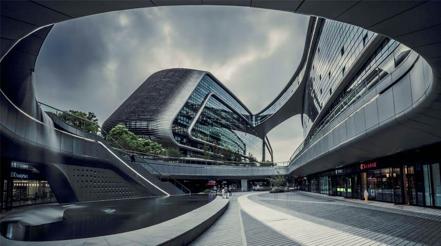 凌空SOHO占地8.6萬余平米、總建筑面積約35萬平方米,12棟建筑被16條空中連橋連接成一個(gè)空間網(wǎng)絡(luò)。凌空SOHO是SOHO中國與建筑設(shè)計(jì)師、普利茲克獎(jiǎng)獲得者扎哈·哈迪德(ZahaHadid)聯(lián)手打造的第3個(gè)建筑精品。